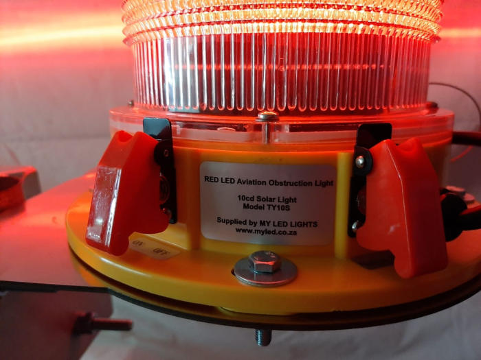 GS and Solar powered E27 RED LED lamp for low intensity aviation obstruction light. LED Beacon Light, LED Aircraft Warning Light, LED Red Warning Light. LED lamp is specially designed for low intensity single or double obstruction light. Combined with Low intensity series Fresnel optic lens, in compliance with ICAO - International Civil Aviation Organization and FAA standard - Federal Aviation Administration of the USA. South African SABS approved, and registered with SA Civil Aviation Authority for compliance.